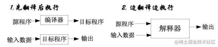 除了编译器之外还有一种叫做解释器,对应的就是解释性语言,最著名的例如Python,JavaScript。