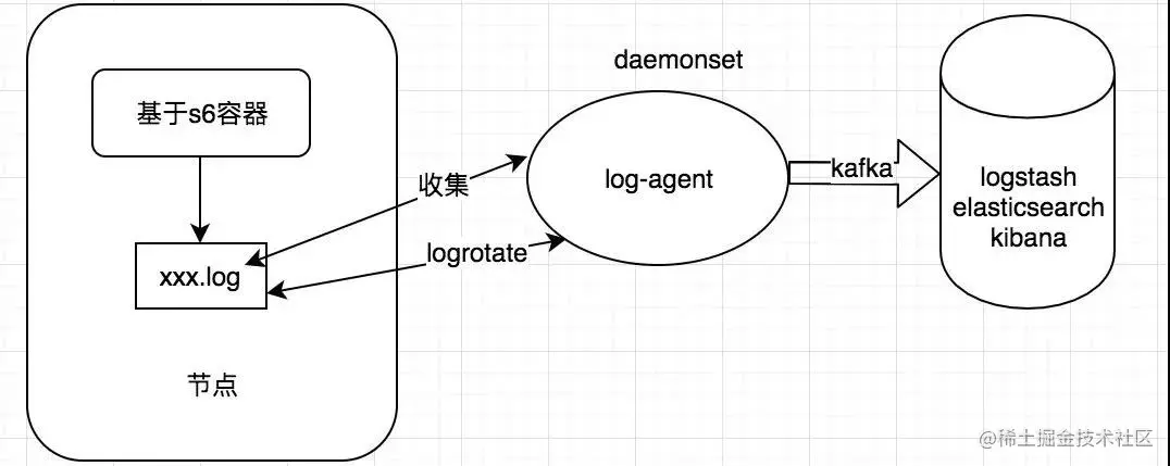 Node级别的日志 , 通过配置容器的log-driver来进行管理,这种需要配合logrotare来进行,日志超过最大限制,自动进行rotate操作。