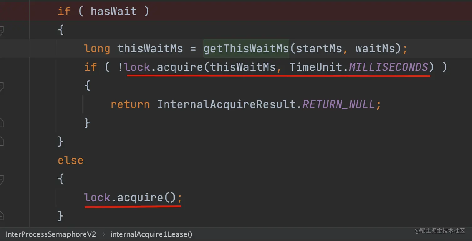 核心源码:InterProcessSemaphoreV2#internalAcquire1Lease
