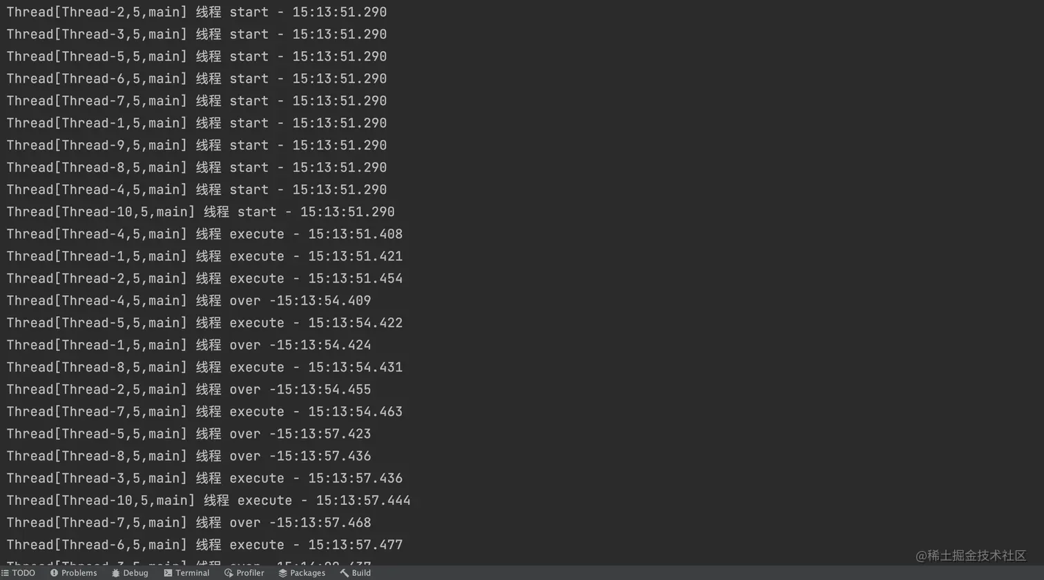 System.out.println(Thread.currentThread() + " 线程 execute - " + LocalTime.now());