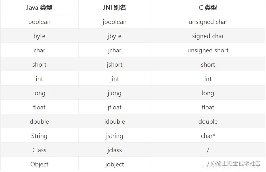 这是一张java-jni数据数据类型对应表