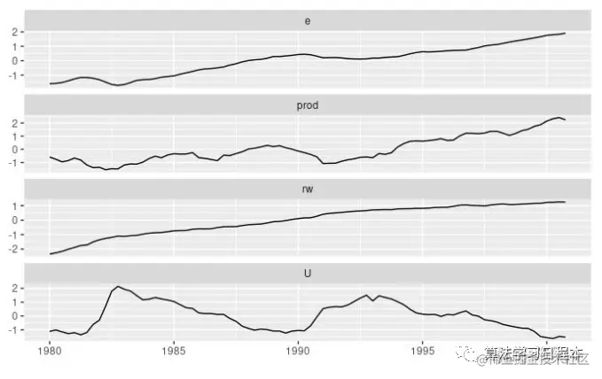 若是多个时间序列数据一起描述趋势,设置facets 可确定是分屏展示还是在同一个图中展示。同时还可以在绘图时设置数据是否标准化,通过scale参数。