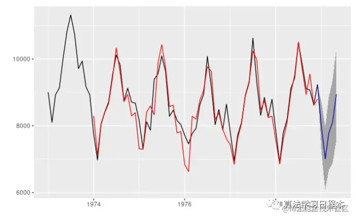 这里可以绘制预测图,也可以绘图未来的趋势,并加上置信区间。