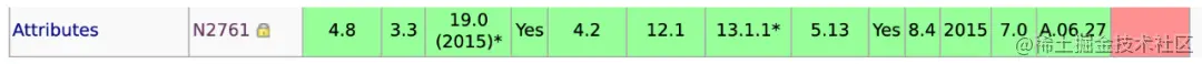 下图是目前主流编译器对于n2761属性提案的支持情况: