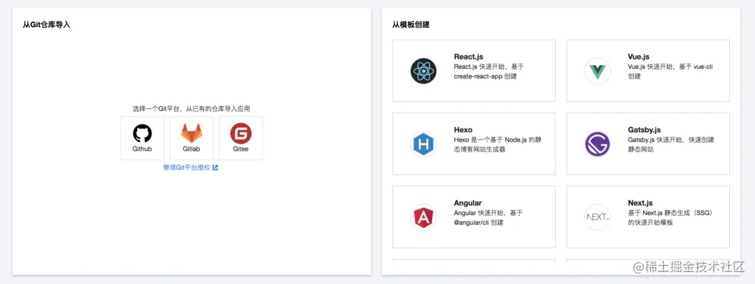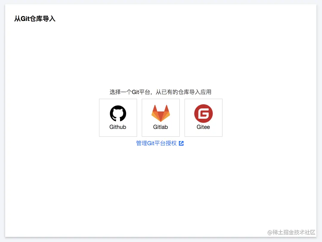 Webify 支持从第三方代码托管平台直接创建应用,目前支持 Github、Gitlab、Gitee码云三种平台,后续我们也会放开支持更多的 Git 平台。