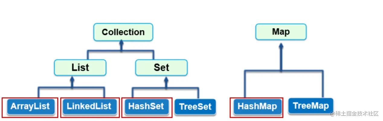 【重点】 Collection:无序,可重复 List系列集合:有序,可重复,有索引。 -- ArrayList:添加的元素是有序,可重复,有索引 -- LinekdList:添加的元素是有序,可重复,有索引 Set系列集合:添加的元素是无序,不可重复,无索引 -- HashSet:添加的元素是无序,不可重复,无索引 -- LinkedHashSet:添加的元素是有序,不可重复,无索引 -- TreeSet:按照大小默认升降序,不可重复,无索引 Map:存储方式key:value键值对