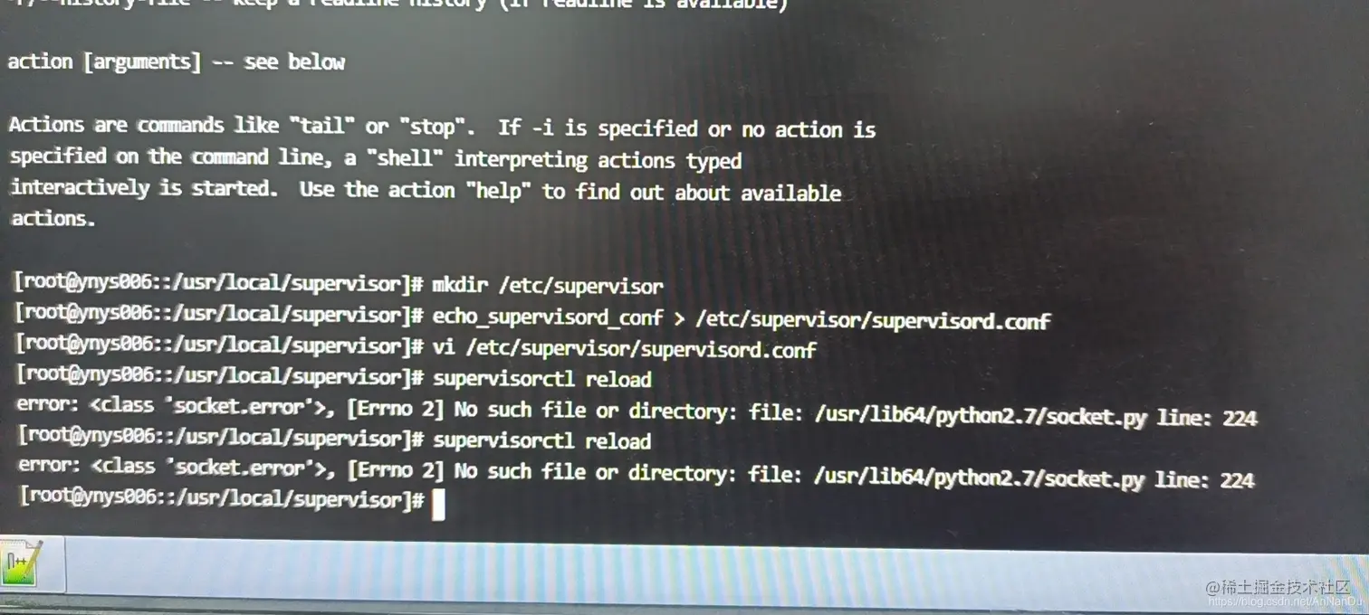 出现报错:error:<class 'socket.error'>, [Errno 2]No such file or directtory: file: /usr/lib64/python2.7/socket.py line:224