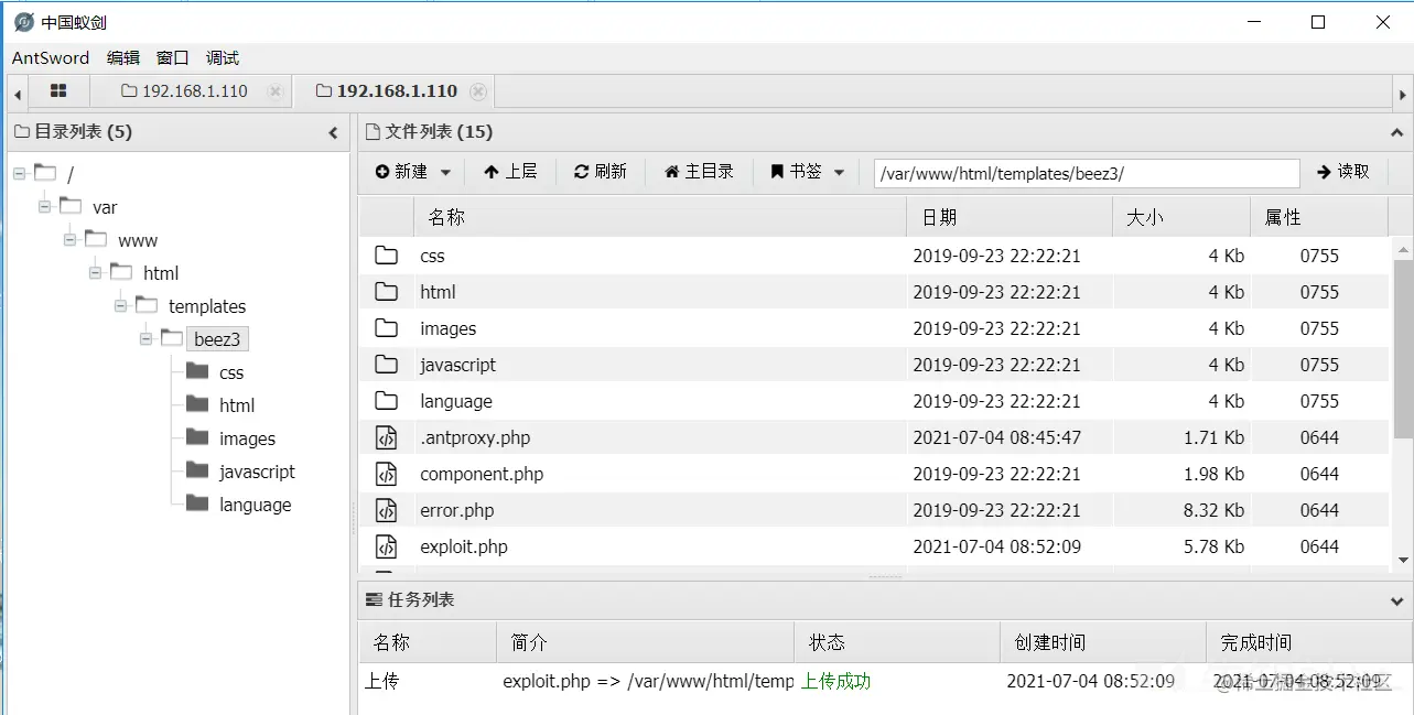 这里使用蚁剑连接成功