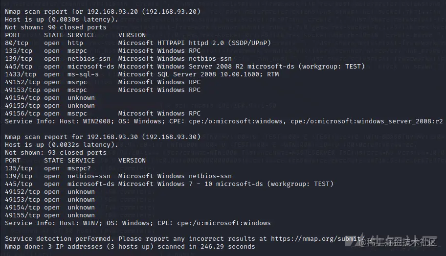 这里扫描完之后可以发现,内网里有3台主机存活,分别是192.168.93.10 192.168.93.20 192.168.93.30