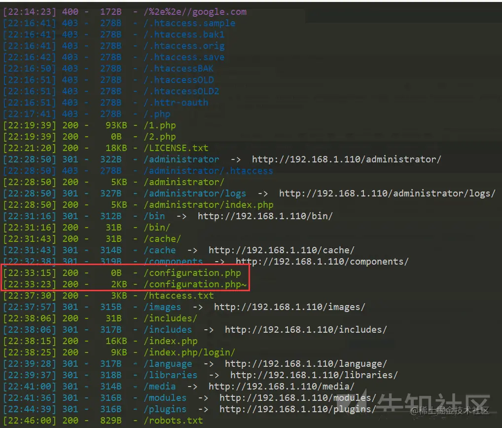 这里使用dirsearch进一步进行扫描,发现了一个configuration.php