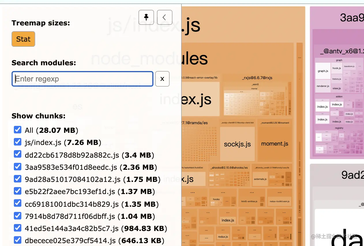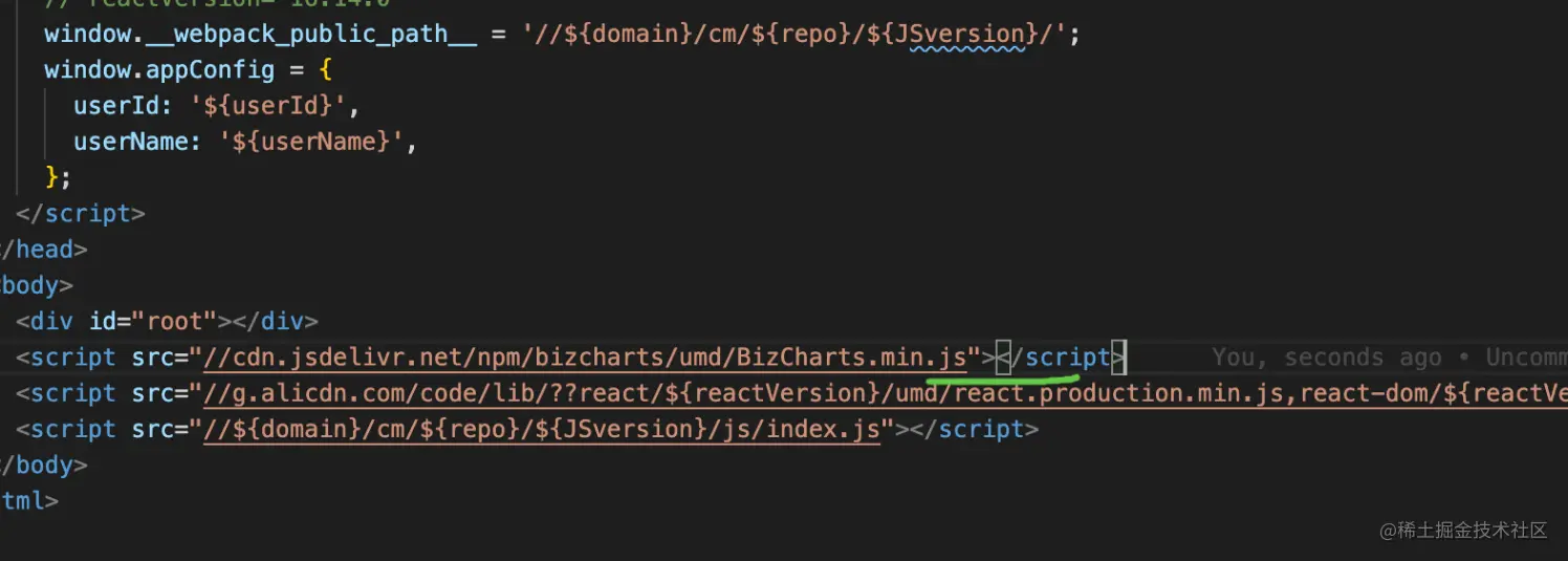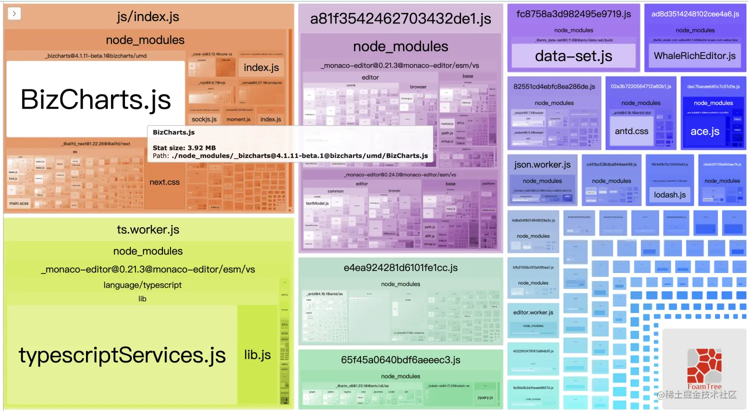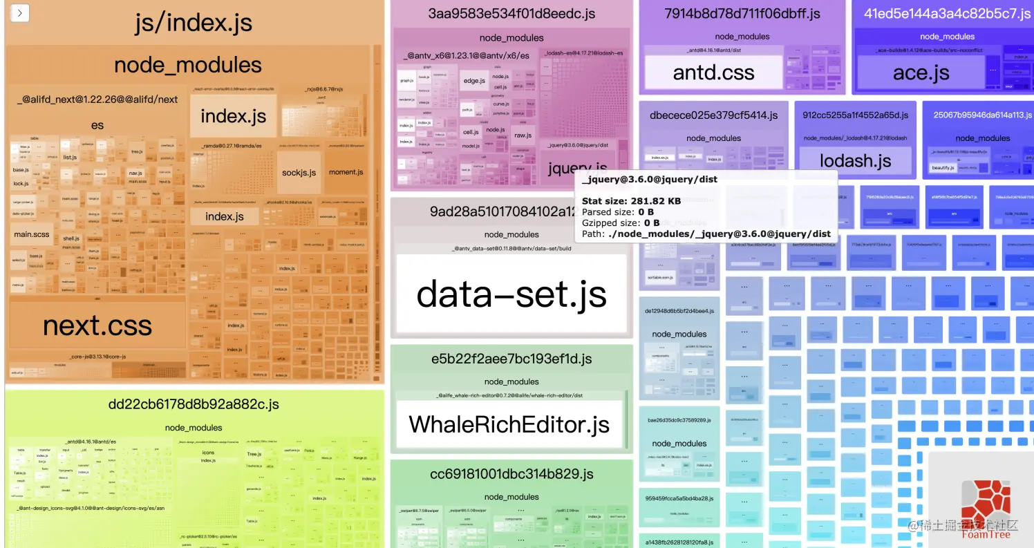 其次也可以看到,我们项目中的react一直都是通过cdn引入的。排除bizcharts后,项目体积减小了3M
