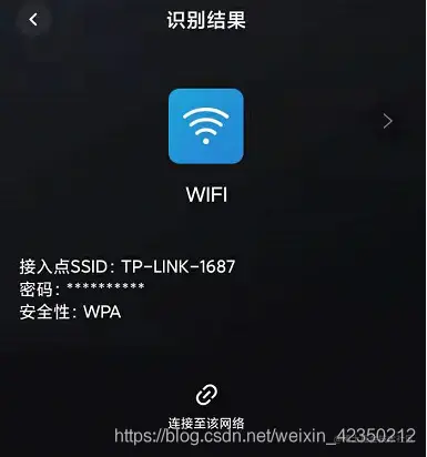手机打开扫一扫,会自动提示连接至该网络,无需输入wifi密码