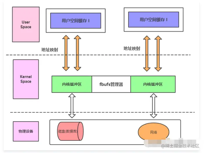 - 将用户进程的内核空间的读缓冲区 (read buffer) 与用户空间的缓存区 (user buffer) 进行内存地址映射;