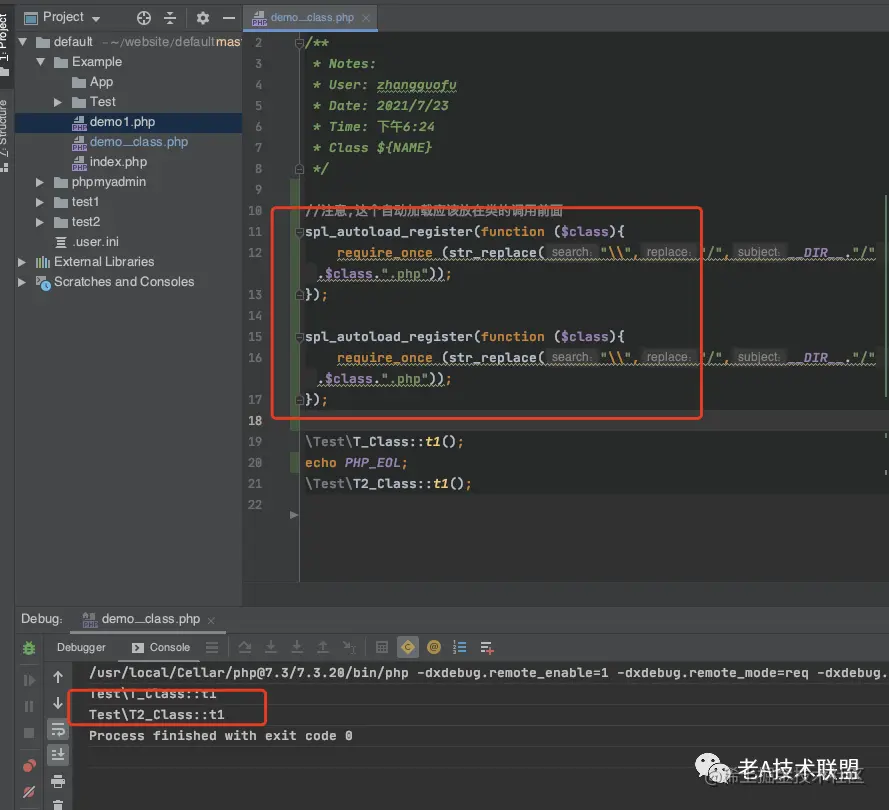 function __autoload($class)它是一个函数,那么这种函数, autoload () 是全局函数只能定义一次,不够灵活,所以所有的类名与文件名对应的逻辑规则都要在一个函数里面实现,造成这个函数的臃肿。,就没法实现了,怎么办呢?在php5.3以后spl_autoload_register() 满足了此类需求。我们来看一下效果 - 或者使用匿名函数