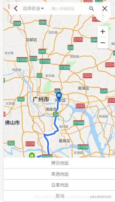 目前找不到检测移动端是否有安装对应的APP,所以把市面上主流的三大地图软件都做了点击跳转,效果如图: