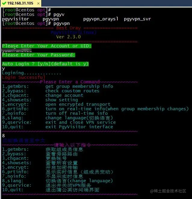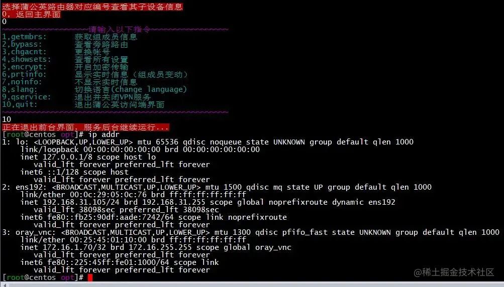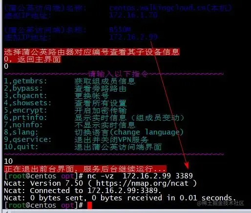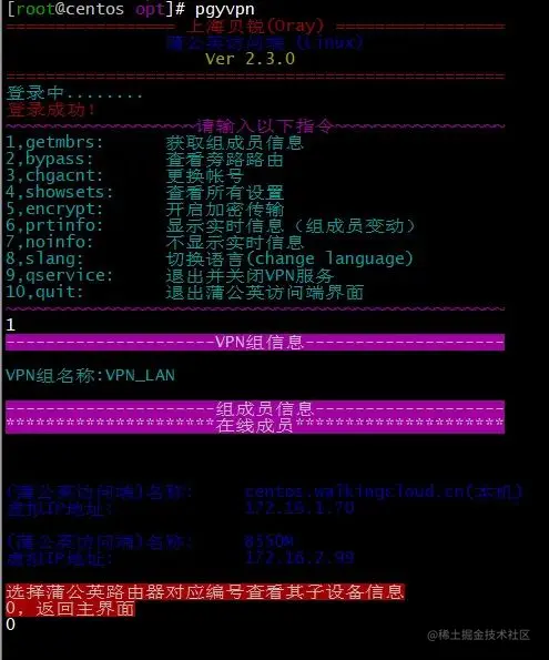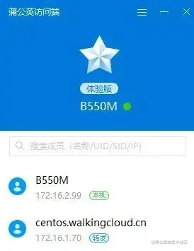 在蒲公英访问端容器内部,通过“pgyvpn”即可调出蒲公英的控制面板