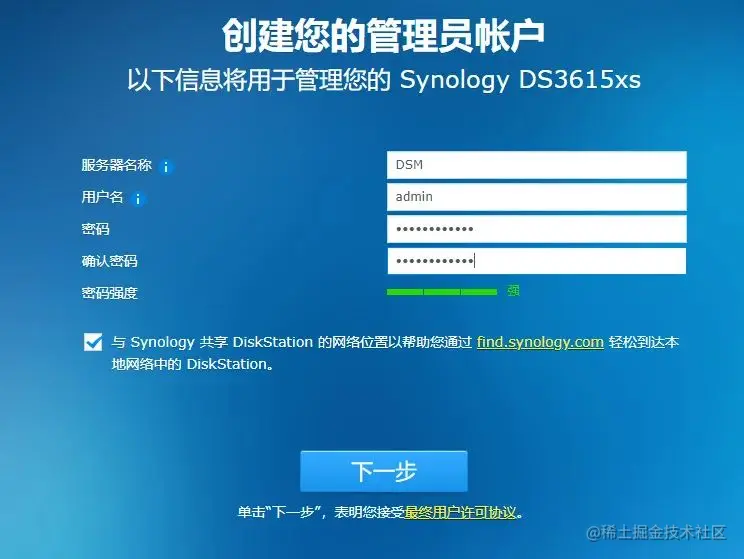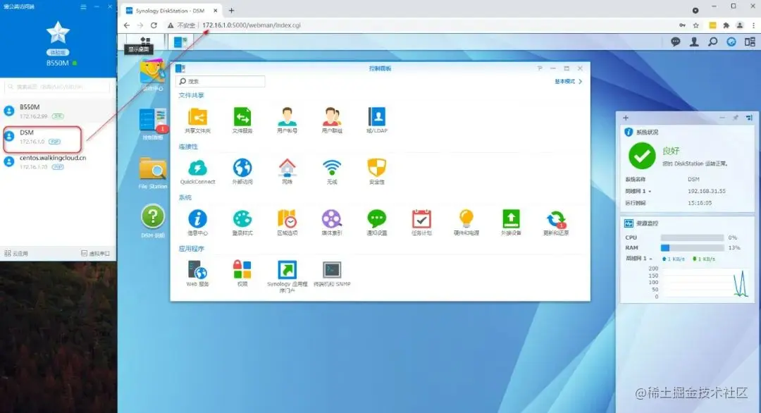 5)测试WindowsPC上使用私有IP地址访问群晖web界面
