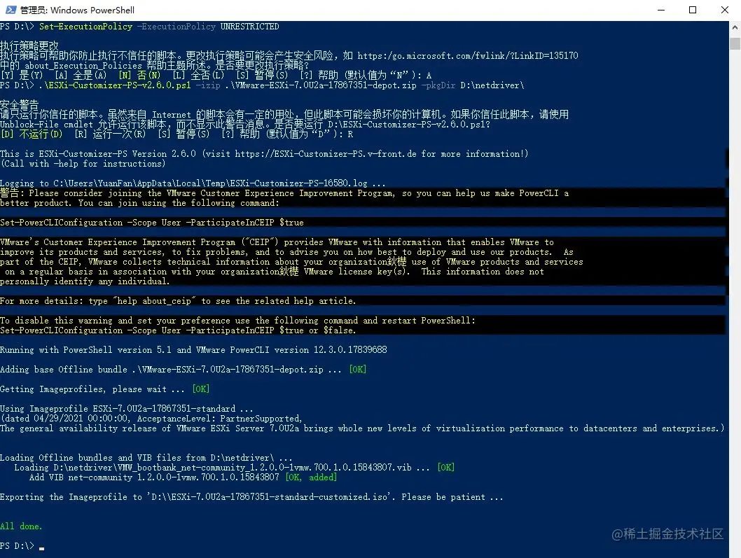.\ESXi-Customizer-PS-v2.6.0.ps1 -izip .\VMware-ESXi-7.0U2a-17867351-depot.zip -pkgDir D:\netdriver\