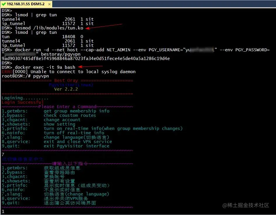 docker run -d --net host --cap-add NET_ADMIN --env PGY_USERNAME=“此处填写贝锐帐号或UID” --env PGY_PASSWORD=“此处填写帐号密码” bestoray/pgyvpn