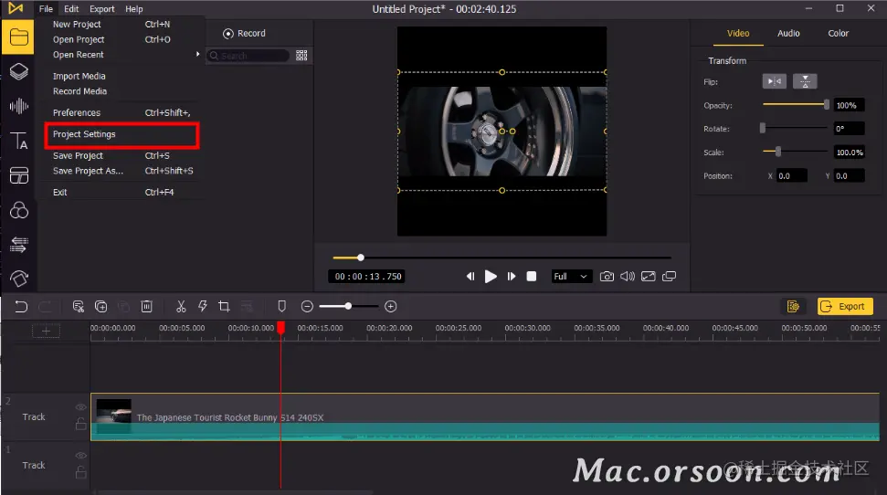 在您的计算机上启动 TunesKit AceMovi,然后转到“文件”>“项目设置”以打开“项目设置”。