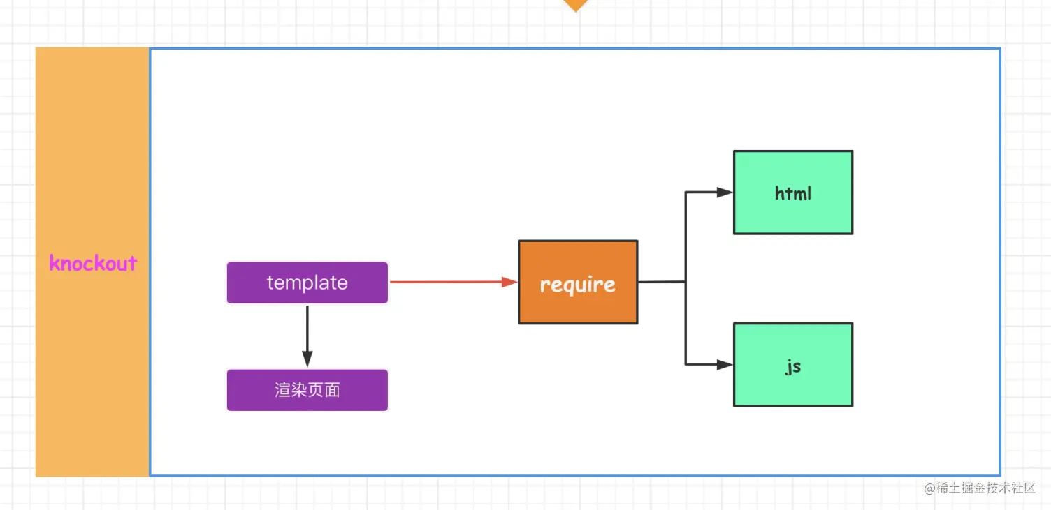 走到这里,require已经和knockout联系在一起。knockout进行模版渲染,require进行文件控制。