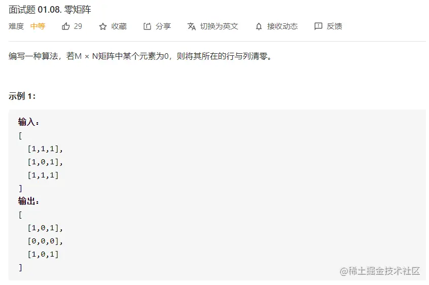 题目地址:面试题 01.08. 零矩阵 - 力扣(LeetCode) (leetcode-cn.com)