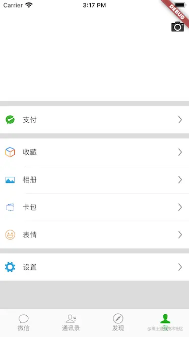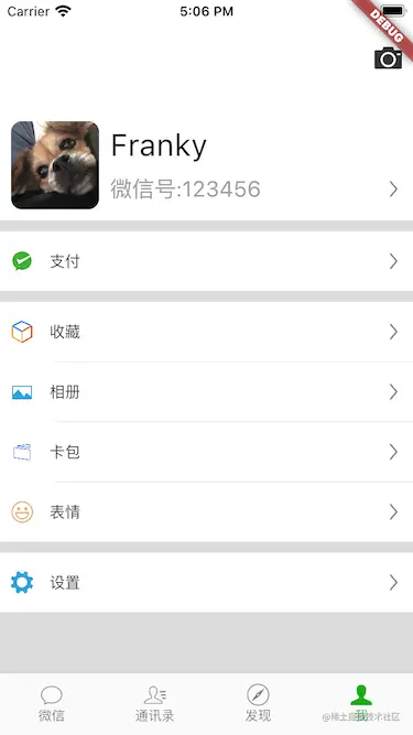 上一篇文章我们已经完成了发现页面的搭建,下一步我们实现微信的我的页面