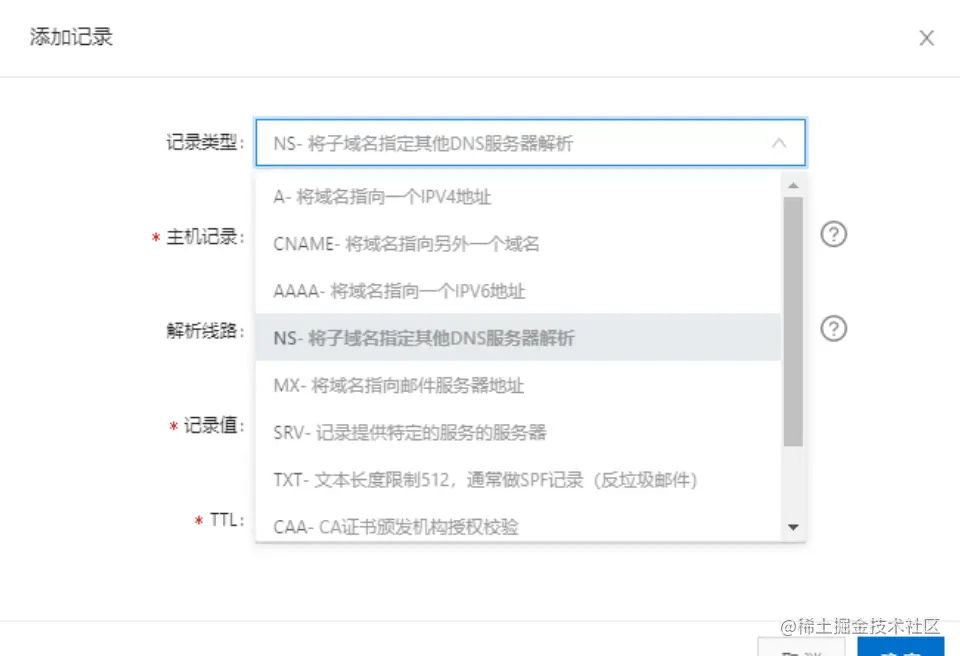 NS:将子域名指定其他DNS服务器解析