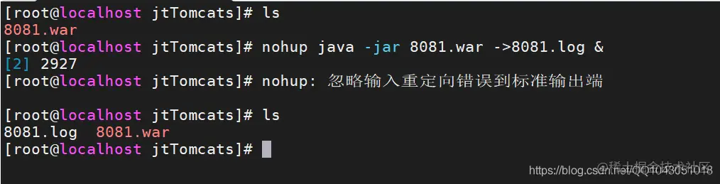 命令: java -jar 8081.war & (表示有后续操作) 通过回车调用