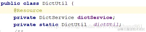 private static DictUtil dictUtil; //关键一:将类自己作为静态参数声明