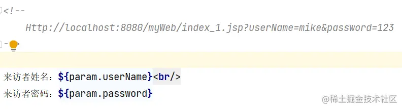 发送请求:Http://localhost:8080/myweb/index.jsp?userName=mike&password=123