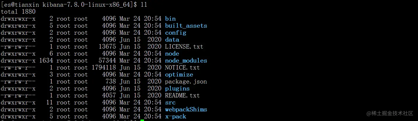 - 解压安装包到kibana-7.8.0-linux-x86_64.tar.gz到上面目录中