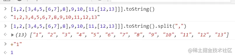 该方法利用了 toString 把数组变成以逗号分隔的字符串,然后可通过遍历数组把每一项再变回原来的类型。
