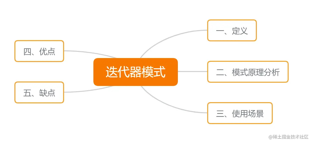 迭代器模式也称游标模式,在绝大多数编程语言中,迭代器已经成为一个基础的类库,直接用来遍历集合对象。关键思想是将访问和遍历的职责从集合对象中分离出来,放入标准的协议对象中。