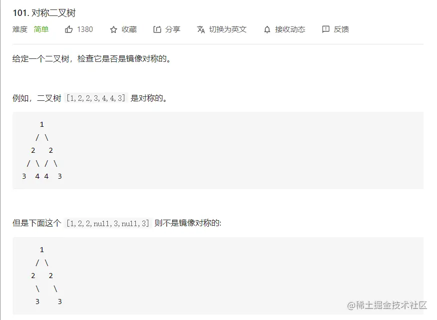 题目地址:101. 对称二叉树 - 力扣(LeetCode) (leetcode-cn.com)