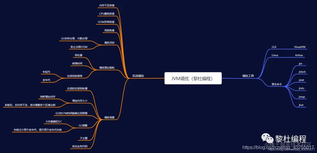 有了第二篇运行时数据区和第三篇GC的理论基础后,然后第四篇的JVM调优实战篇一:JVM调优实战篇一,这一篇主要是围绕着JVM调优实战讲解的工具篇,包括线上的Arthas工具、GUI工具(Visual VM)、内存分析工具(mat)以及linux的原始命令jps、jstack、jstat、jmap、jhat等命令的讲解和使用。