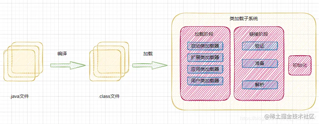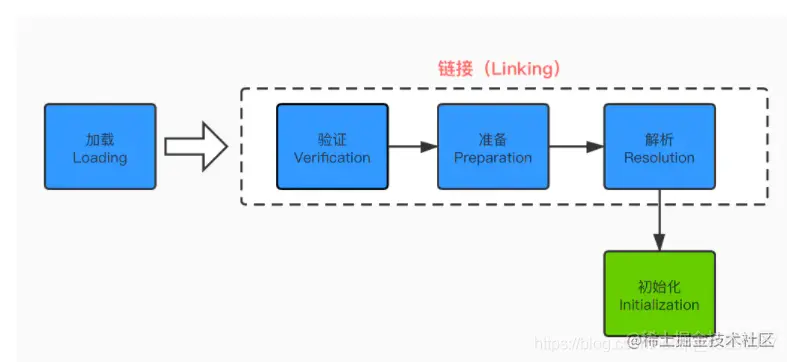 对于这一部分,我之前也写过一篇详细的,所以这里做一个大概的介绍,详细的可以参考这一篇文章:面试官:你知道java类是怎么跑起来的吗?问的我一脸懵