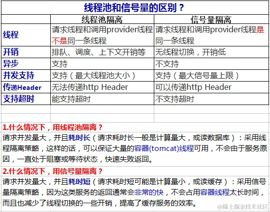 16.线程池隔离和信号量隔离的区别