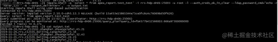 真实案例:impala-shell -q 'select * from apex_report.test_test' -i rrs-hdp-dn01:25003 -u root -l --auth_creds_ok_in_clear --ldap_password_cmd="echo -n 'Haier,123'" -B --output_delimiter=',' -o output.txt