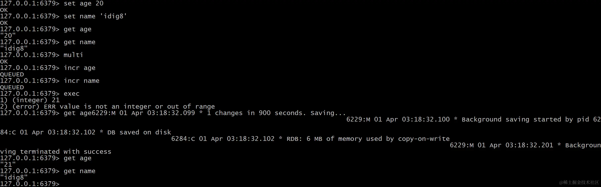 对key 的值做加加操作,并返回新的值。注意 incr 一个不是 int 的 value 会返回错误,incr 一个不存在的 key,则设置 key 为 1