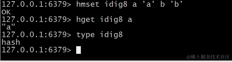 hmset idig8 a 'a' b 'b'