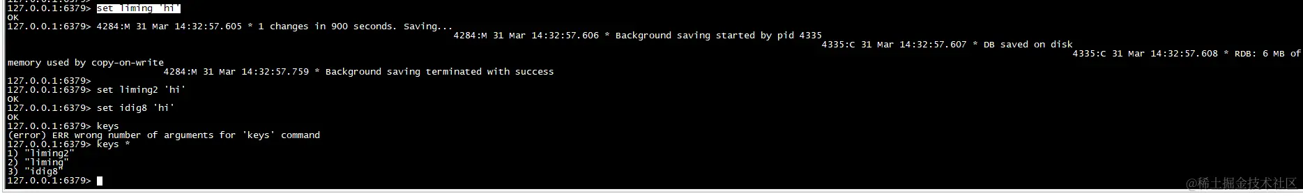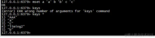 一次设置多个 key 的值,成功返回 ok 表示所有的值都设置了,失败返回 0 表示没有任何值被设置。其实实际生产中这个用处比较大,一次放入多个值,减少跟客户端的请求次数。