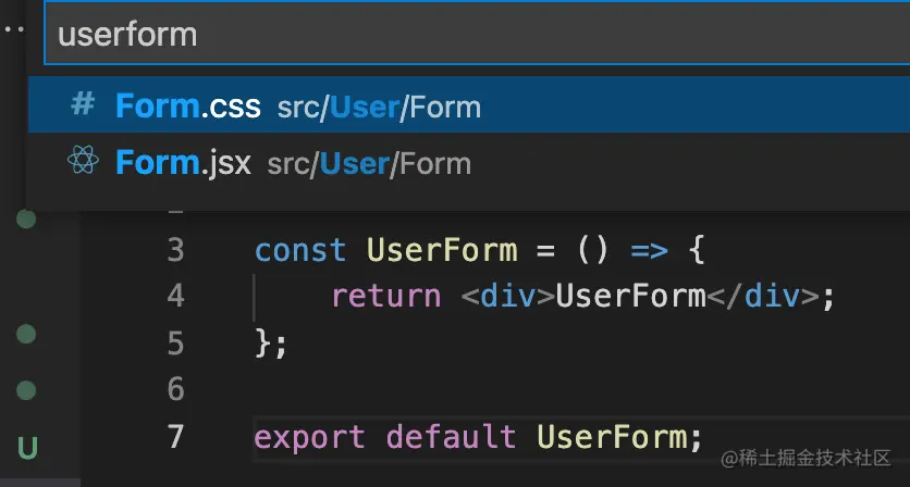 便于搜索: 如果你的编辑器支持模糊搜索,那么搜索UserForm就可以找到对应的文件