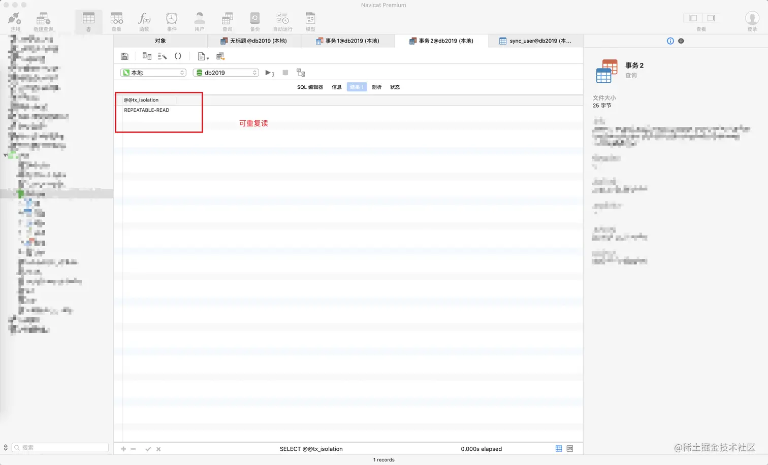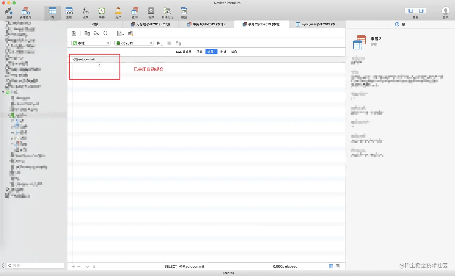 表已经准备就绪了,接下来看下我们的数据隔离级别、并且把我们的自动提交关闭