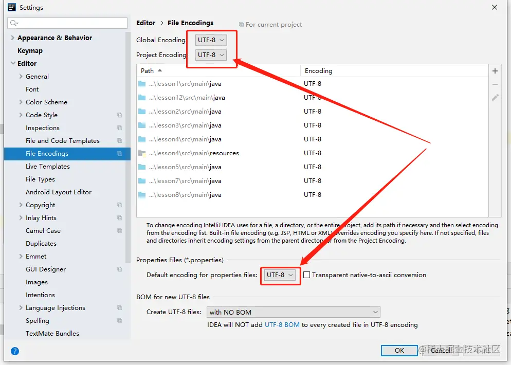 设置编码格式,ide-->file-->setting-->editor-->file encodings