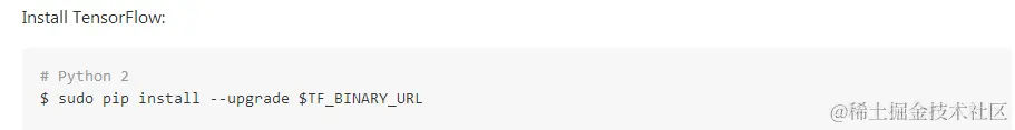 之后回到之前的Tensorflow安装教程页面:https://github.com/tensorflow/tensorflow/blob/master/tensorflow/g3doc/get_started/os_setup.md