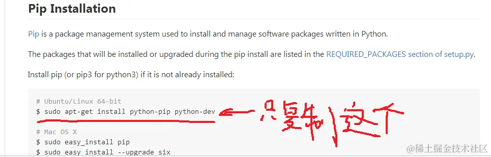 sudo apt-get install python-pip python-dev (这个不完整,完整版如下)