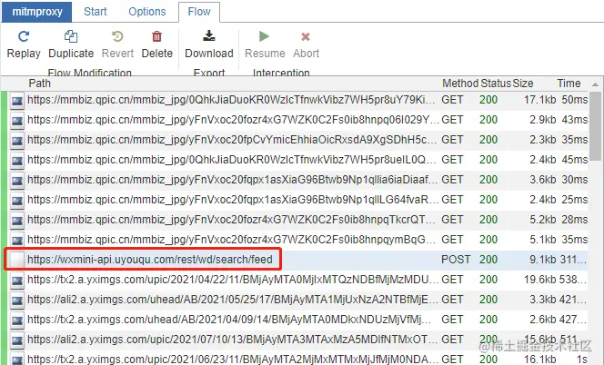 这里通过mitmproxy抓取某手小程序,如果不清楚这个技术操作的小伙伴,可以参考我之前的一篇文章(以【某程旅行】为例,讲述小程序爬虫技术),该文章从0到1讲解了如何使用mitmproxy采集小程序。