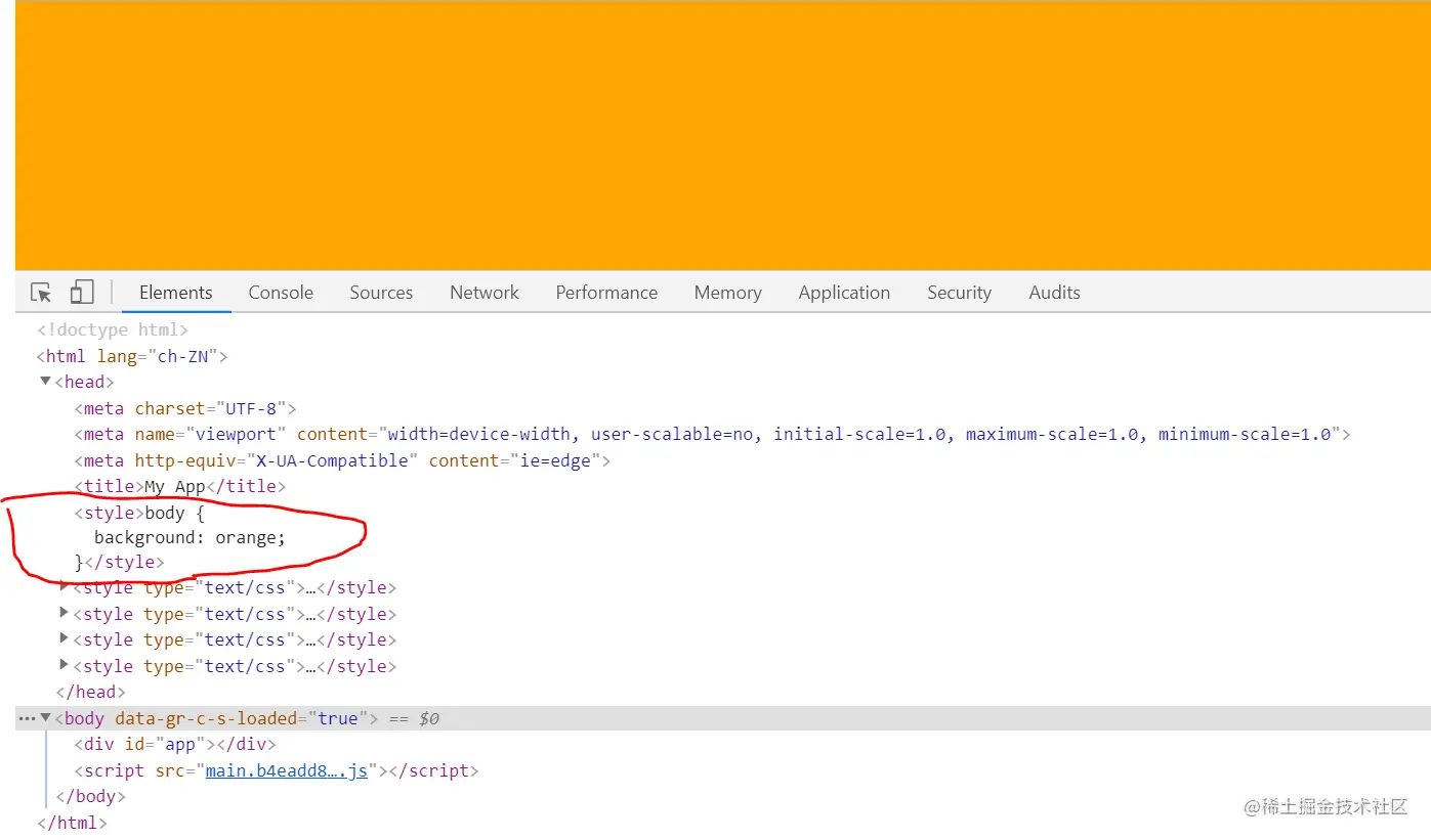 然后如果引入css, webpack 就会把css标签读出来放到style标签里
